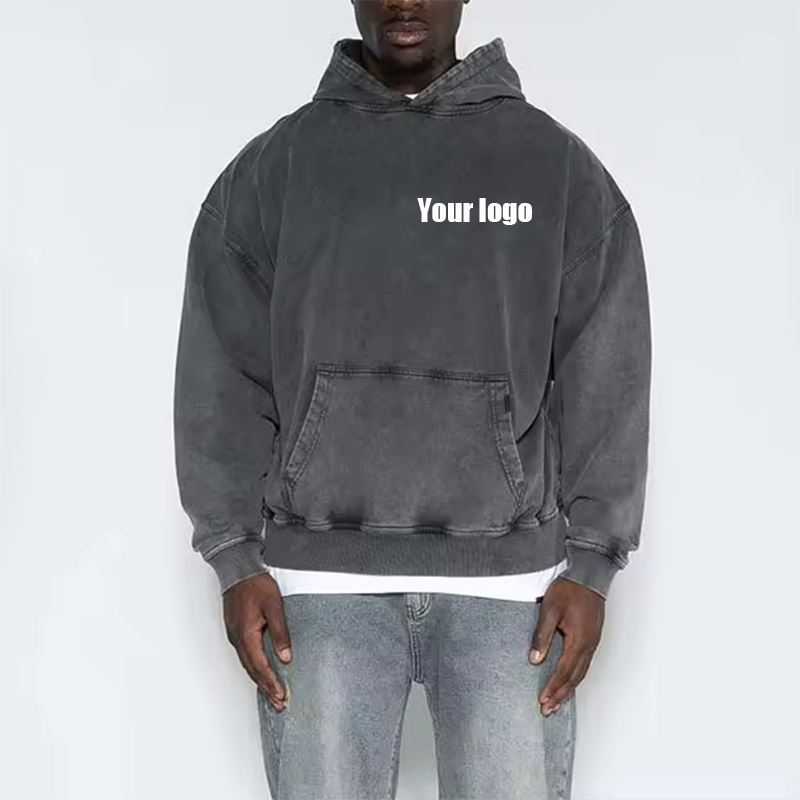 Custom Men's Hoodie Oversize Drop Shoulder Hoodie Blank Pullover Streetwear Heavyweight Cotton Acid Washed Vintage Hoodies