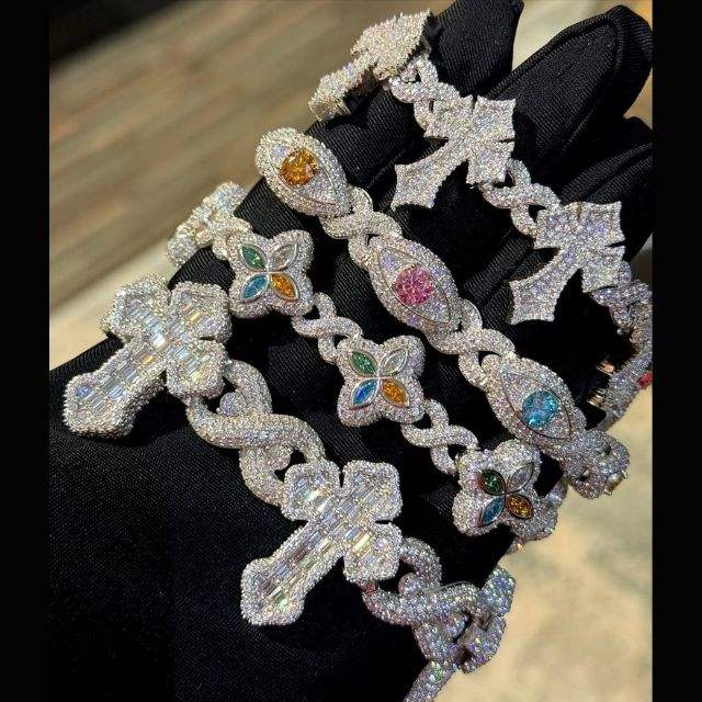Custom Men's Iced 925 Silver VVS Diamond Infinity Moissanite Cross Cuban Chain Bracelet Hip Hop Tennis Bracelets for Men Women
