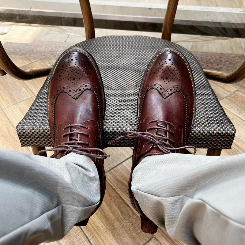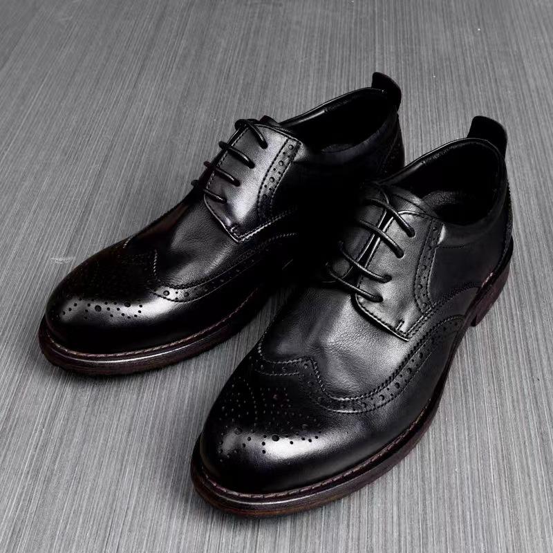 Custom Men's Lace-Up Shoes-Pointed-Toe Waterproof Carved Design Full-Grain Leather for Business Casual Wedding Occasions Trendy