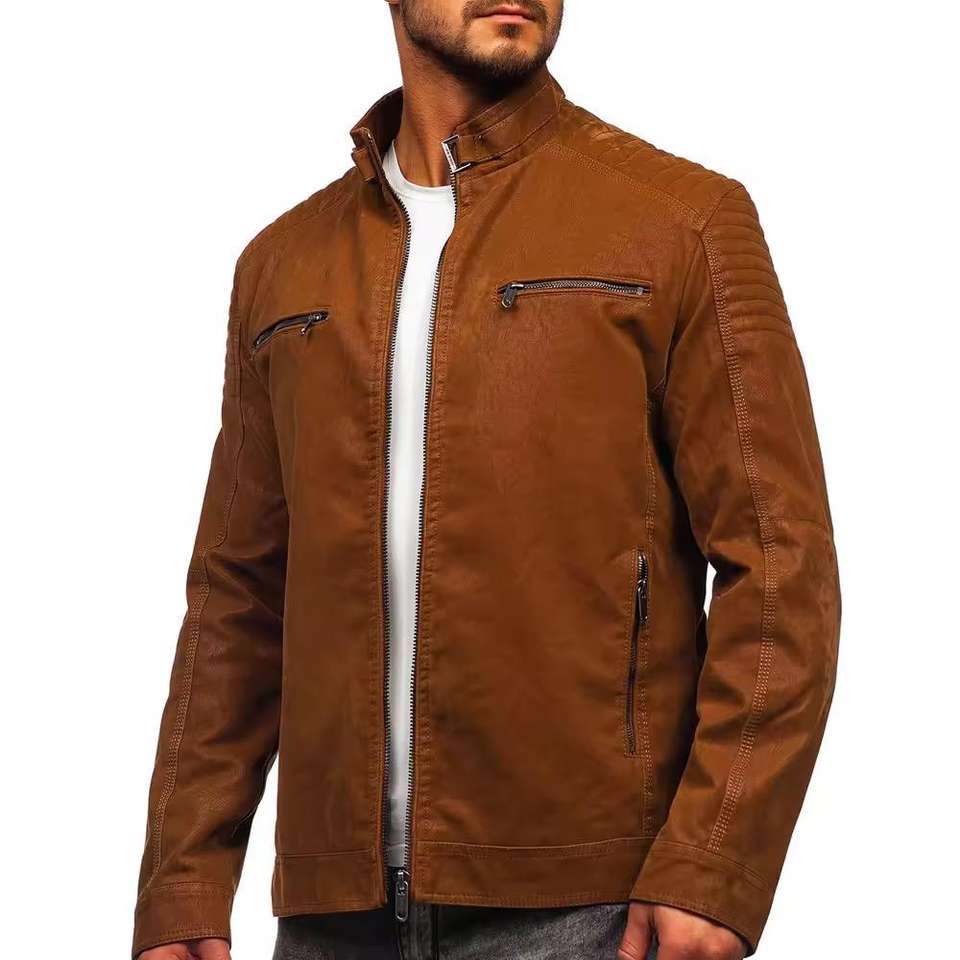 Custom Men's Leather Jacket with Zipper Closure Premium Quality High Street Style Fashion Outerwear