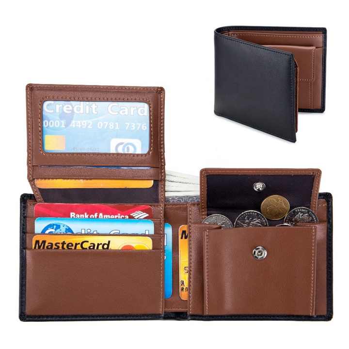 Custom Men's Leather Wallets Coin Pocket Purse Genuine Leather Card Holder Wallet RFID Mens Leather Wallet