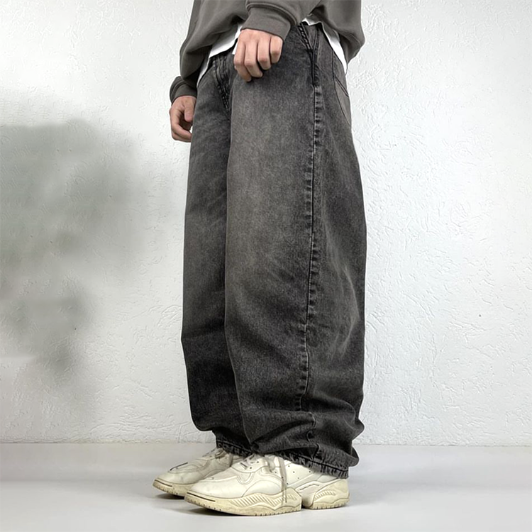 Custom Men's Loose Fit Big Wide Leg Vintage Style Super Baggy Skater Faded Jeans Gothi