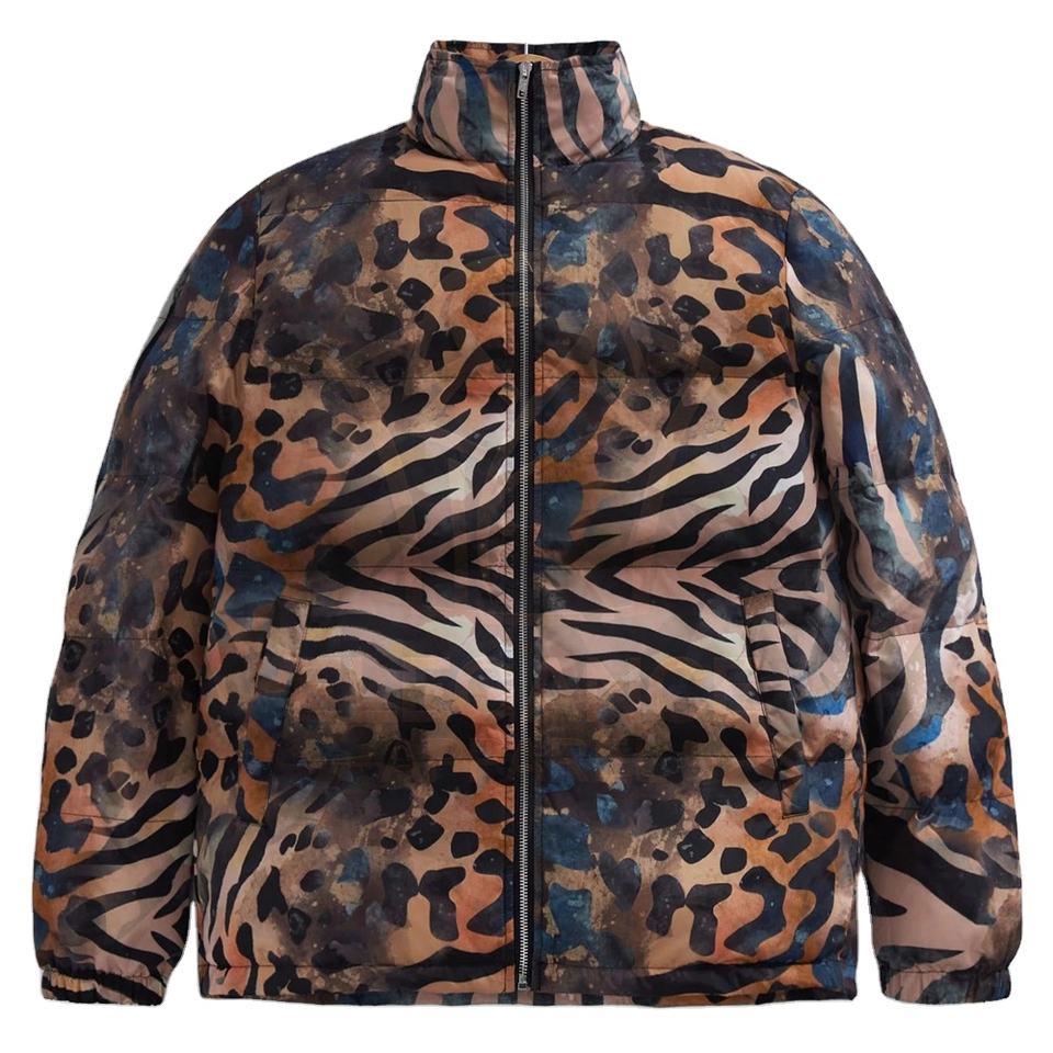 Custom Men's Loose Fit Striped Print Zip Padded Coat Heavy Duty OEM/ODM Thick Quilted Canvas Jacket Outerwear Puffer Jacket