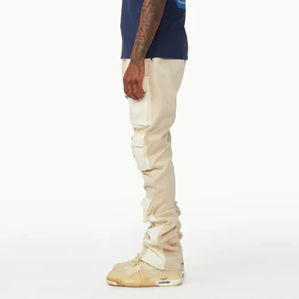 Custom Men's Mid Waist Vintage Washed Distressed Acid Wash Flare Sweatpants Patchwork Elastic Jogger Pant
