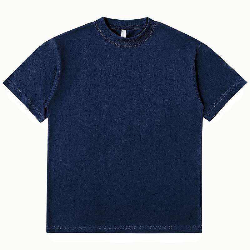Custom Men's O-Neck Blank Oversize T-Shirt Luxury Boxy Front Color 100% Heavy Cotton Screen Printing Logo Contrast Trim Knitted