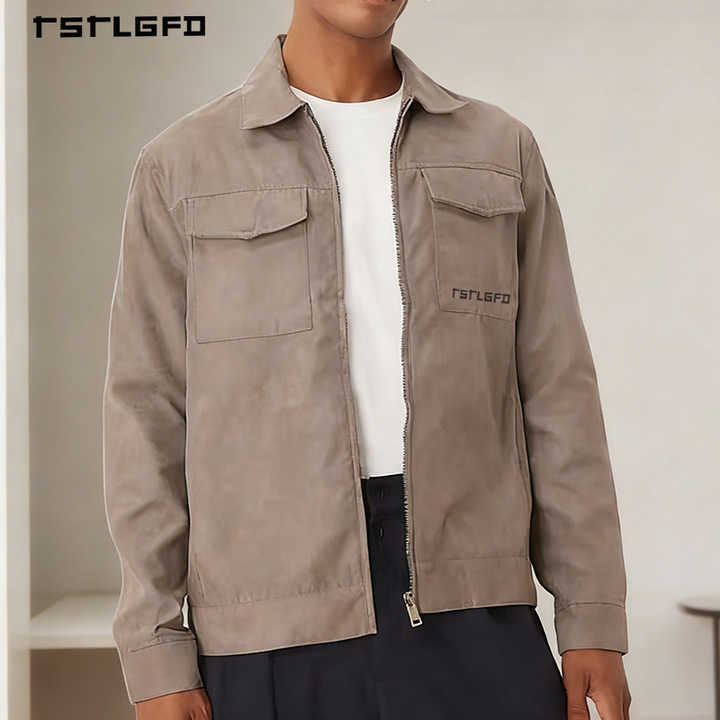 Custom Men's Outerwear Utility Jacket Beige Cotton Twill Regular Fit Zip-Up Streetwear Look Wholesale Jackets