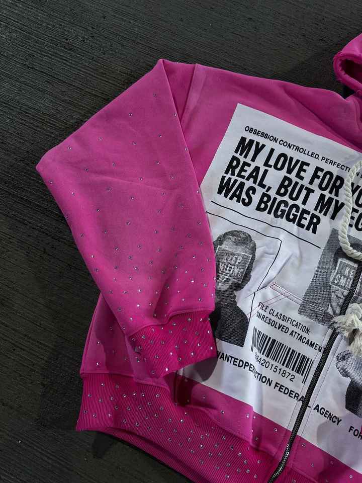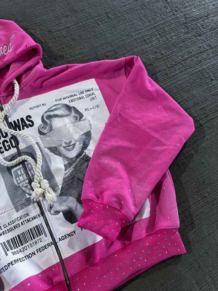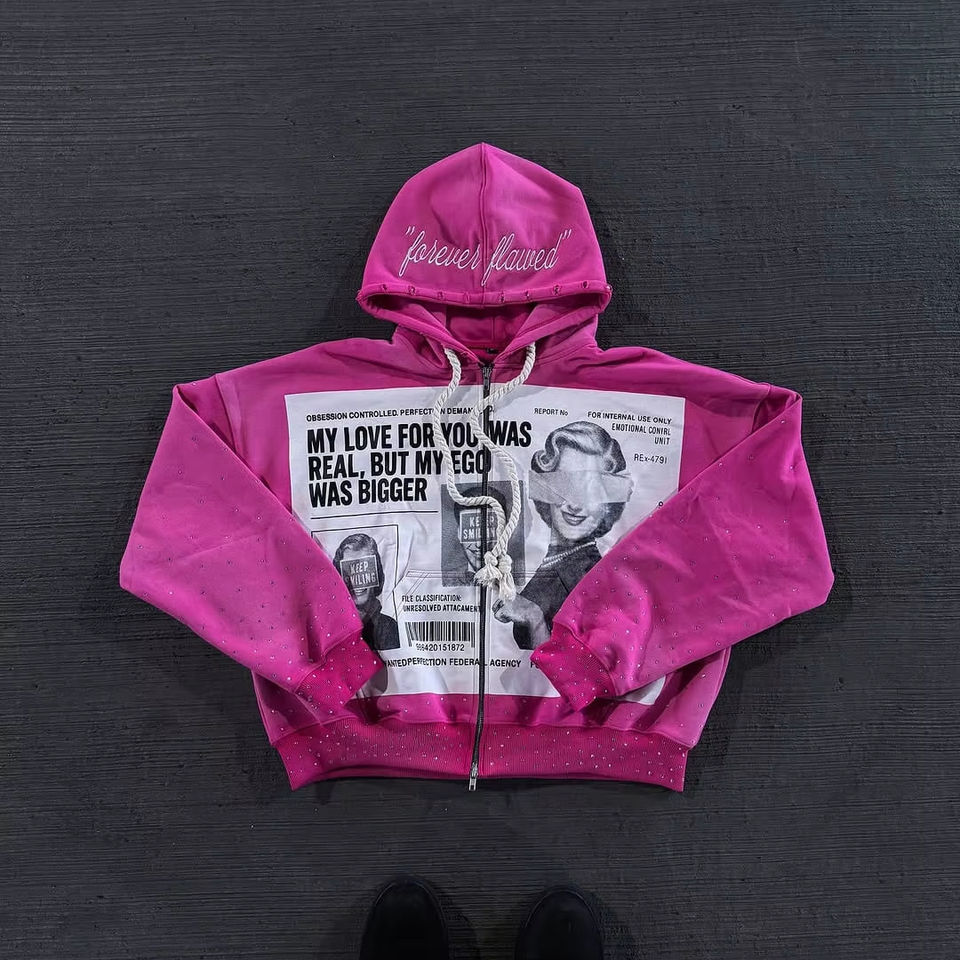 Custom Men's Oversized Baggy Boxy Fit Washed Zip up Vintage Loose Casual Streetwear Rhinestone Hoodie Men