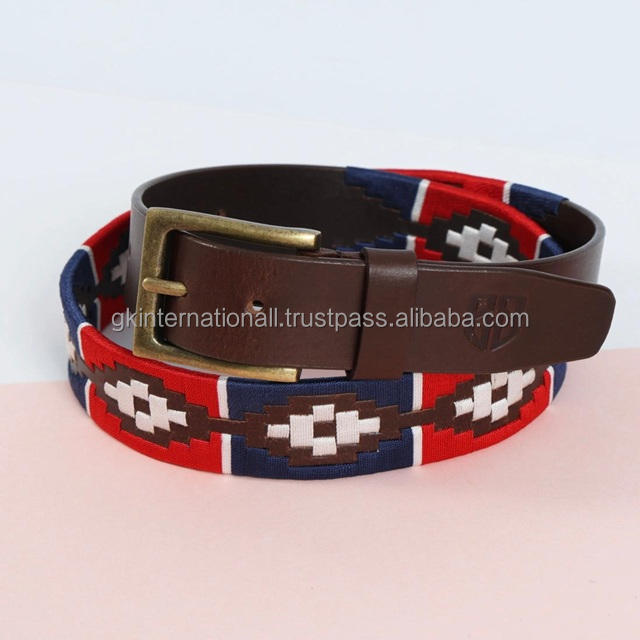 Custom Men's Polo Belt Full Grain Leather with Hand Embroidery Stainless Steel and Alloy Buckle for Tactical Applications