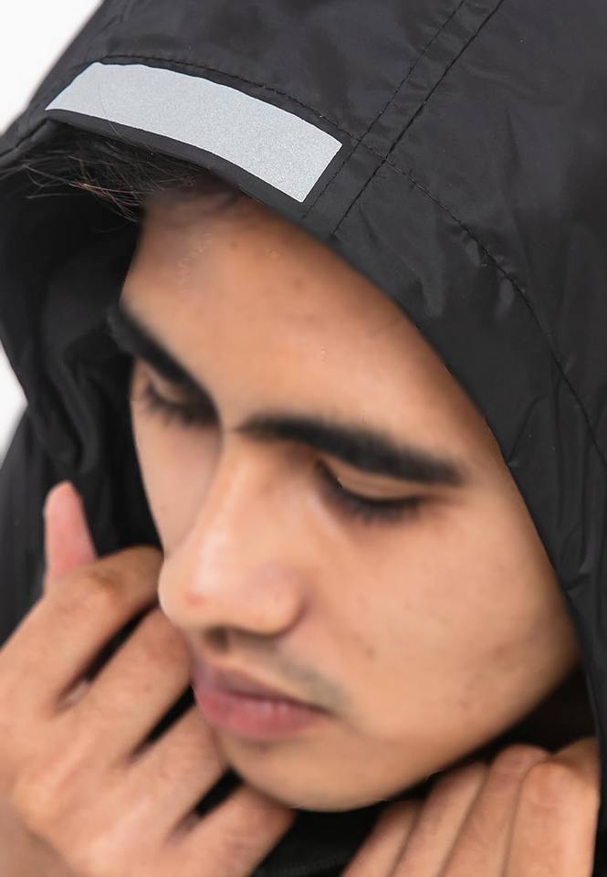 Custom Men's Polyester Zipper Windbreaker Jacket with High Quality Satin Printed Logo Hood-Fashionable Winter Running Gear