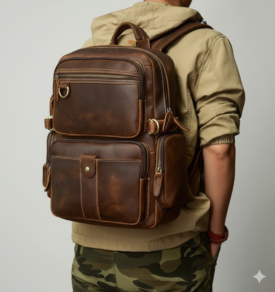 Custom Men's Premium Genuine Leather Durable Lightweight Sling Laptop Office Backpack for Business Travel and Daily Use
