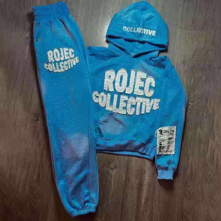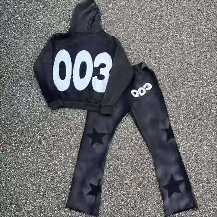 Custom Men's Printed Heavyweight Distressed Embroidery Vintage Acid Washed 100% Cotton Breathable Quick Dry Sweatpants Hoodie