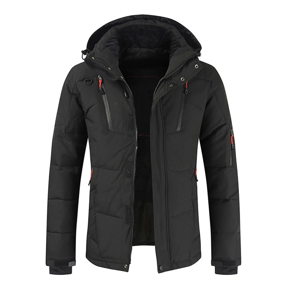 Custom Men's Puffer Jacket Multi Pockets Goose Down Oversized Pullover Plain Black Winter Cropped Hooded Bubble Puffer Jacket