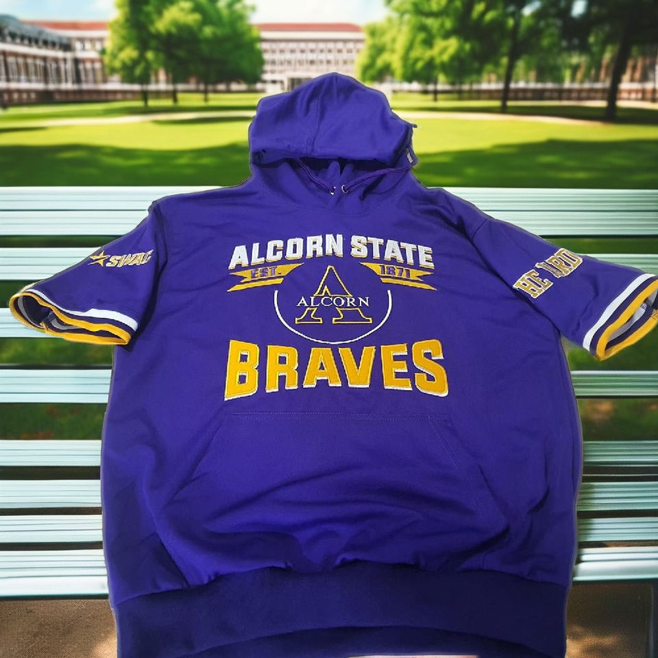 Custom Men's Pullover Hoodie Embroidered American State Baseball Short Sleeves Oversized Hoody Alcorn State Purple Hoodies