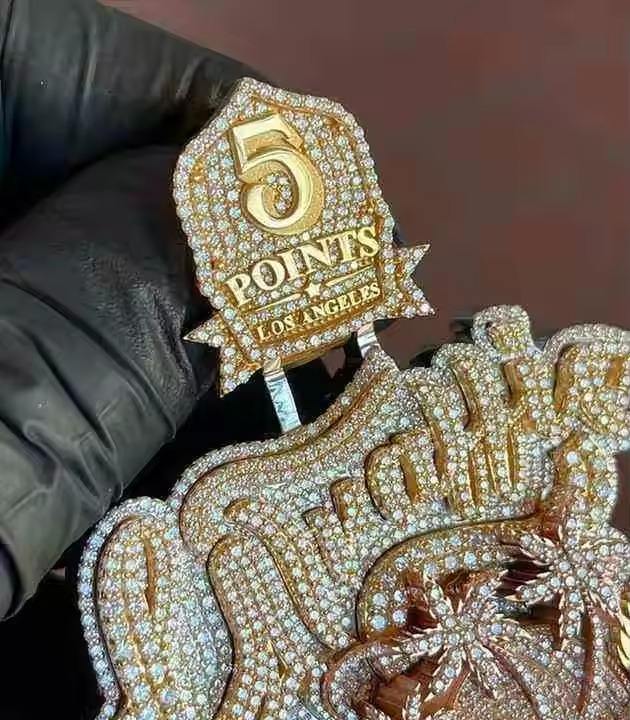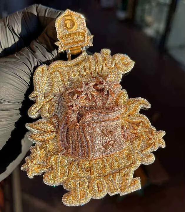 Custom Men's Rhodium Plated 925 Sterling Silver Iced Out VVS Moissanite Hip Hop Pendant
