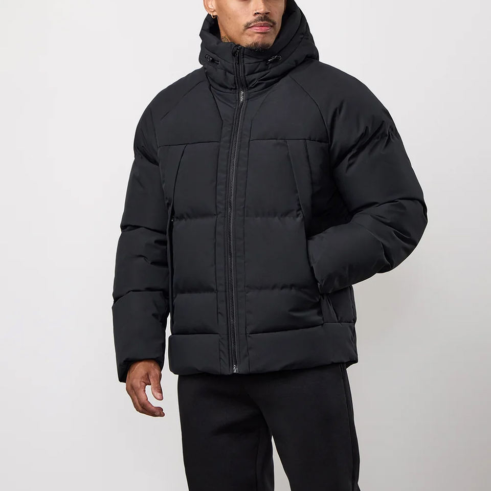 Custom Men's Stand Collar Black Waterproof Windproof Puffer Jacket With Cotton Filling Zipper Jackets For Men