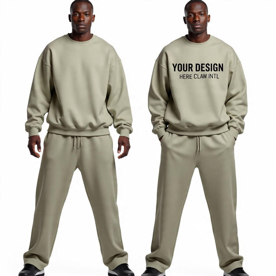 Custom Men's Streetwear Rhinestone Tracksuit Blank Oversized Boxy Relaxed Hoodie Flared Sweatpants Set