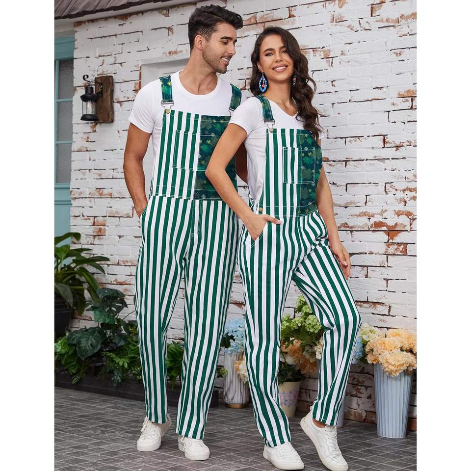 Custom Men's Striped Bib Overalls Adjustable Straps Midweight Jumpsuit With Pockets
