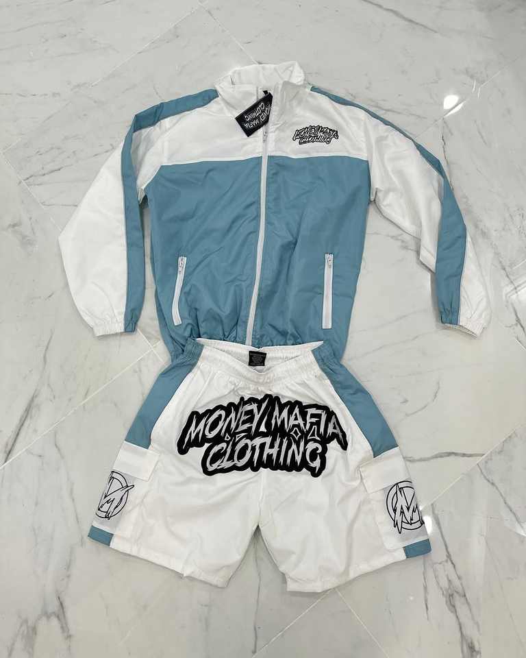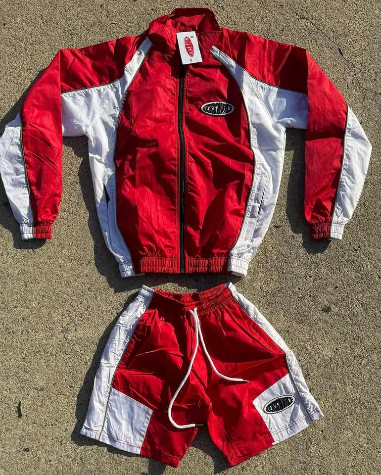 Custom Men's Summer Outfits Streetwear Nylon Windbreaker Jacket Hoodie and Shorts Flame Embroidery Logo Tracksuit Two-Piece Set