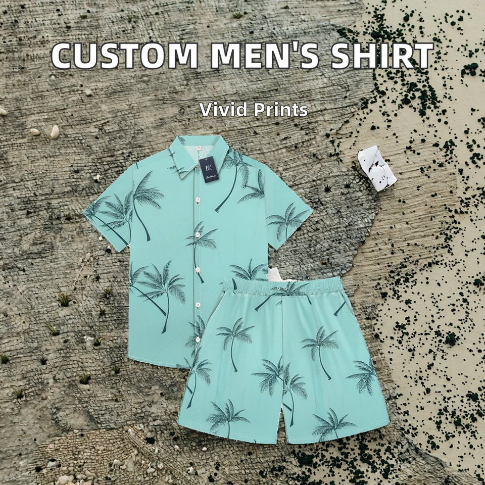 Custom Men's Summer Oversized Floral Hawaiian Aloha Casual Shirt Heat-Transfer Printed Cotton Knitted Eco-Friendly Plus Size