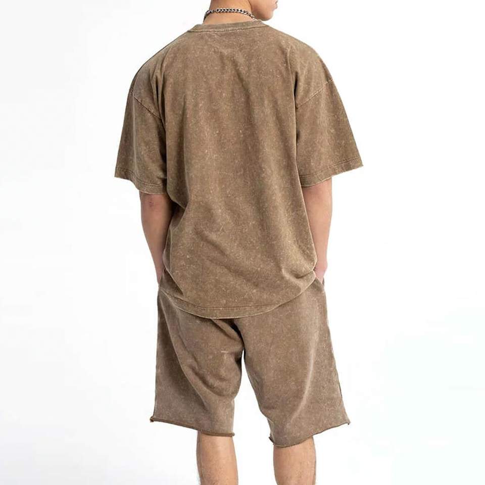 Custom Men's Summer Trending Acid Wash Custom Printed T-Shirt and Casual Sport Shorts Set 2-Piece Set