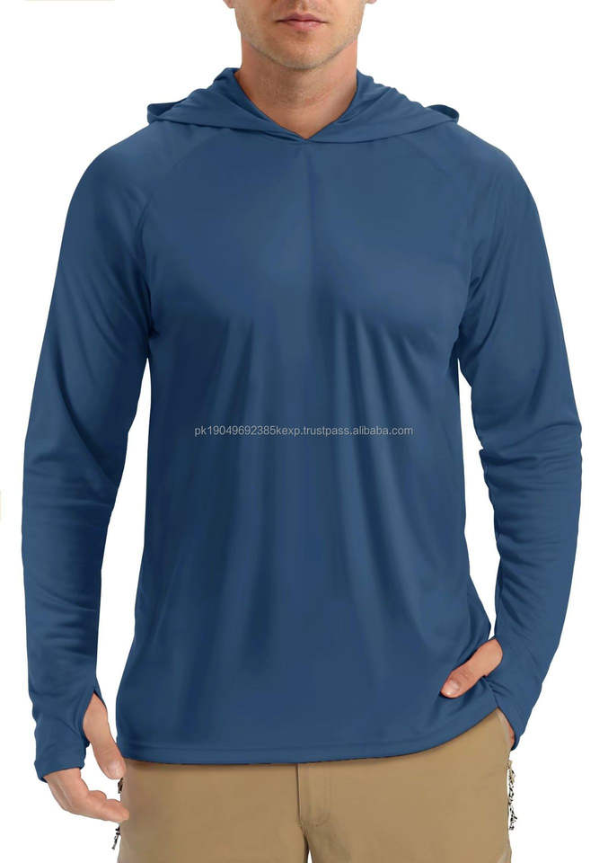Custom Men's UPF 50 Outdoor Clothing Long Sleeve Pullover Hoodies T-Shirts for Climbing Hiking Running UV Sun Protection Fishing