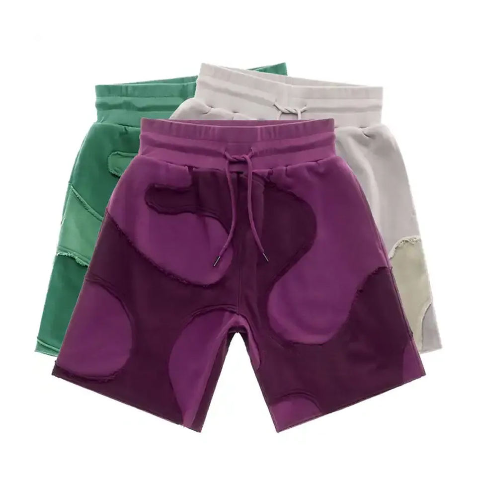 Custom Men's Vintage French Terry Jogger Shorts High Street Ripped Patch Embroidery Print Cut Sew Mid Waist Street Wear Pockets