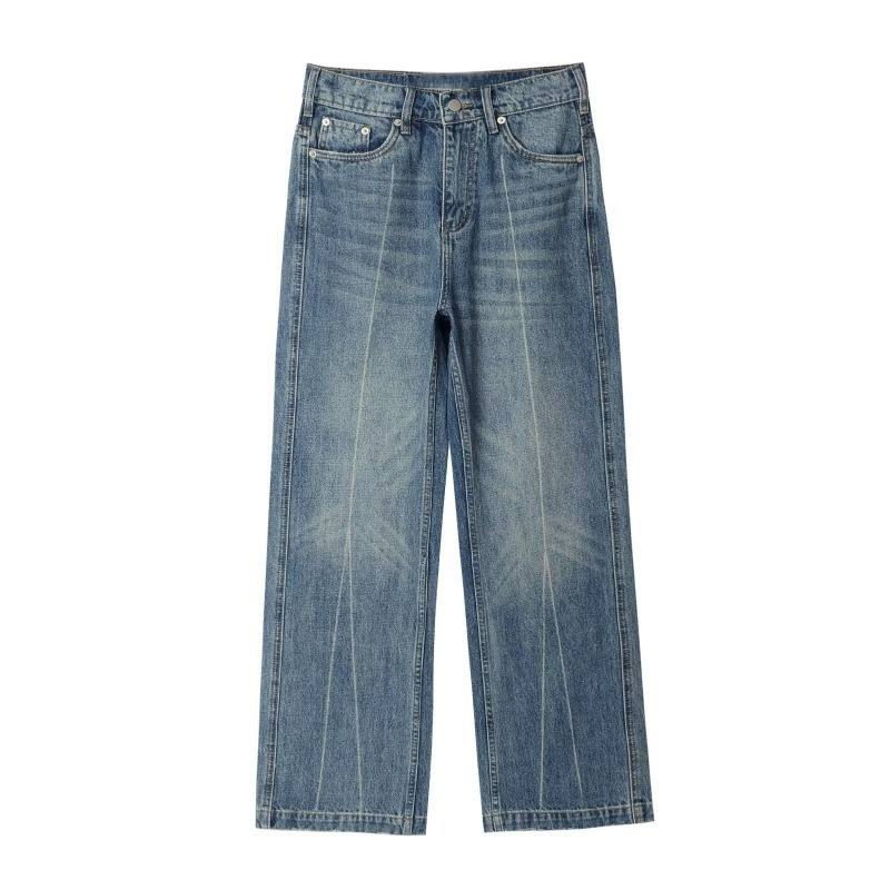 Custom Men's Vintage Washed Denim Pants High Street Manufacturer's Simple Loose Straight Wide Leg Design Plus Size Casual Style