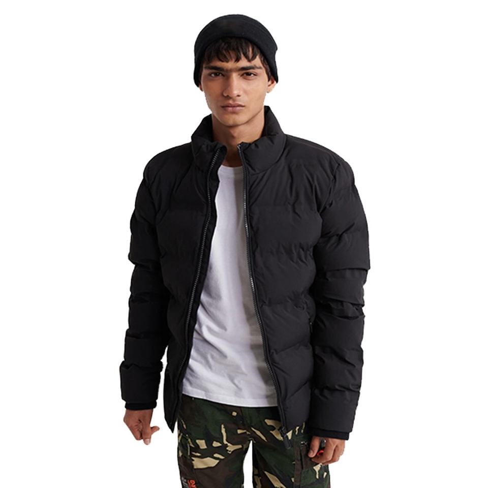 Custom Men's Waterproof Woolen Puffer Jacket Smart Casual Winter Wear with Zipper Closure Stand Collar OEM Service Available