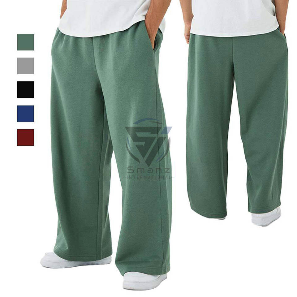Custom Men's Wide Jogger Pants Cotton Baggy Fleece Washed Sweatpants Wholesale 350 Gsm Heavyweight Straight Leg Sweatpants