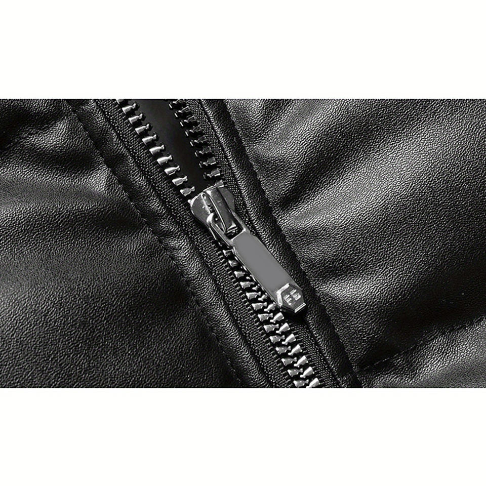 Custom Men's Winter Jacket Waterproof Windproof PU Material Fur Lining Puffer Jacket Hooded Street Fashion Outdoor Style