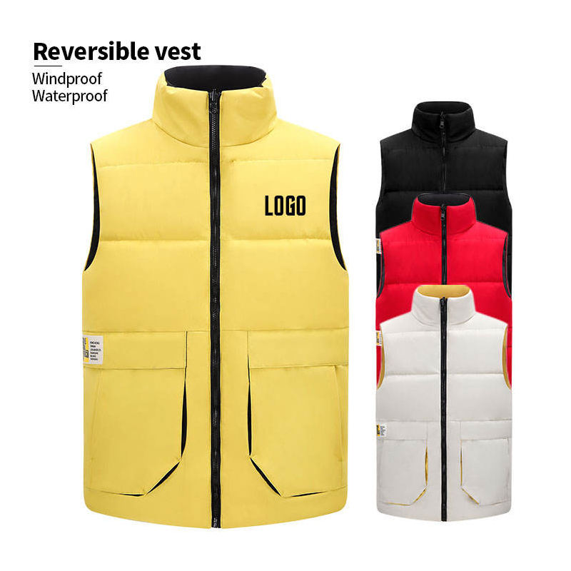 Custom Men's Women's Casual Outdoor Thickened Padded Vest Stand Collar Zipper Front Pocket Winter Jacket Gilet Black Quilted