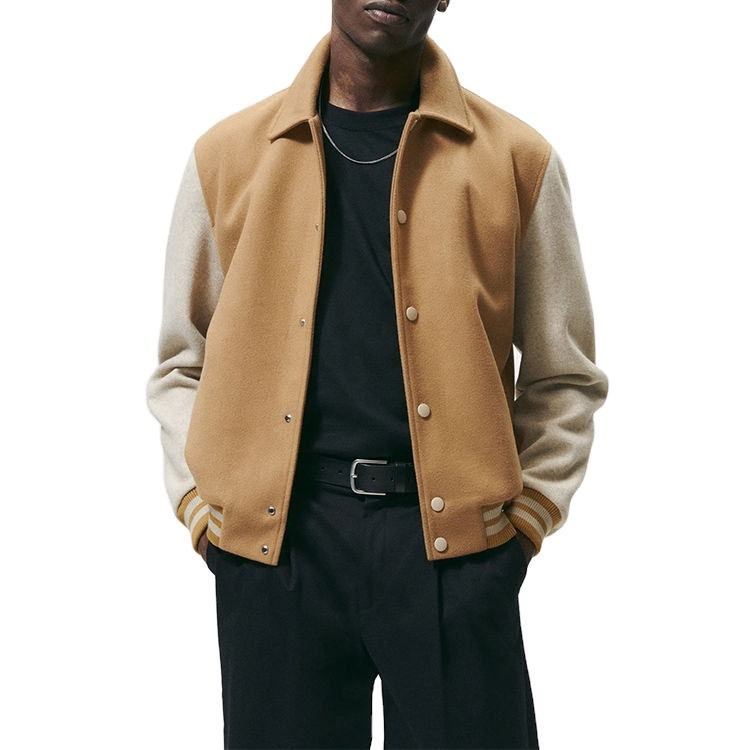 Custom Men's Wool Varsity Jackets Stand Collar High Street Style Waterproof Windproof for Winter Customizable