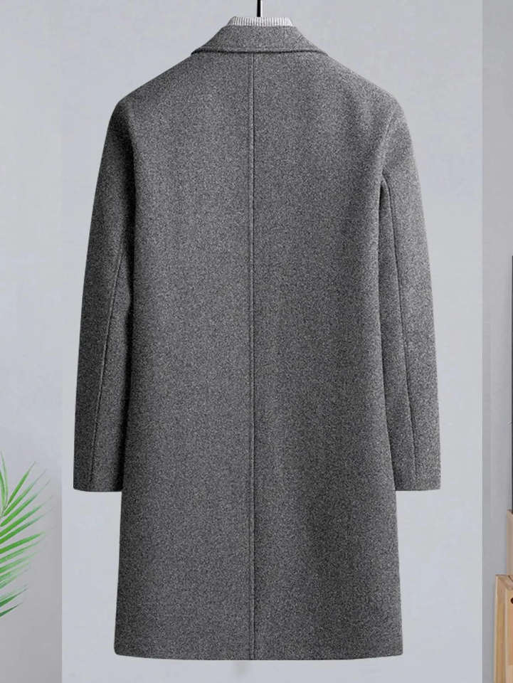 Custom Men's Woolen Winter Long Overcoat Elegant Formal Casual Mandarin Collar Single Button Breathable