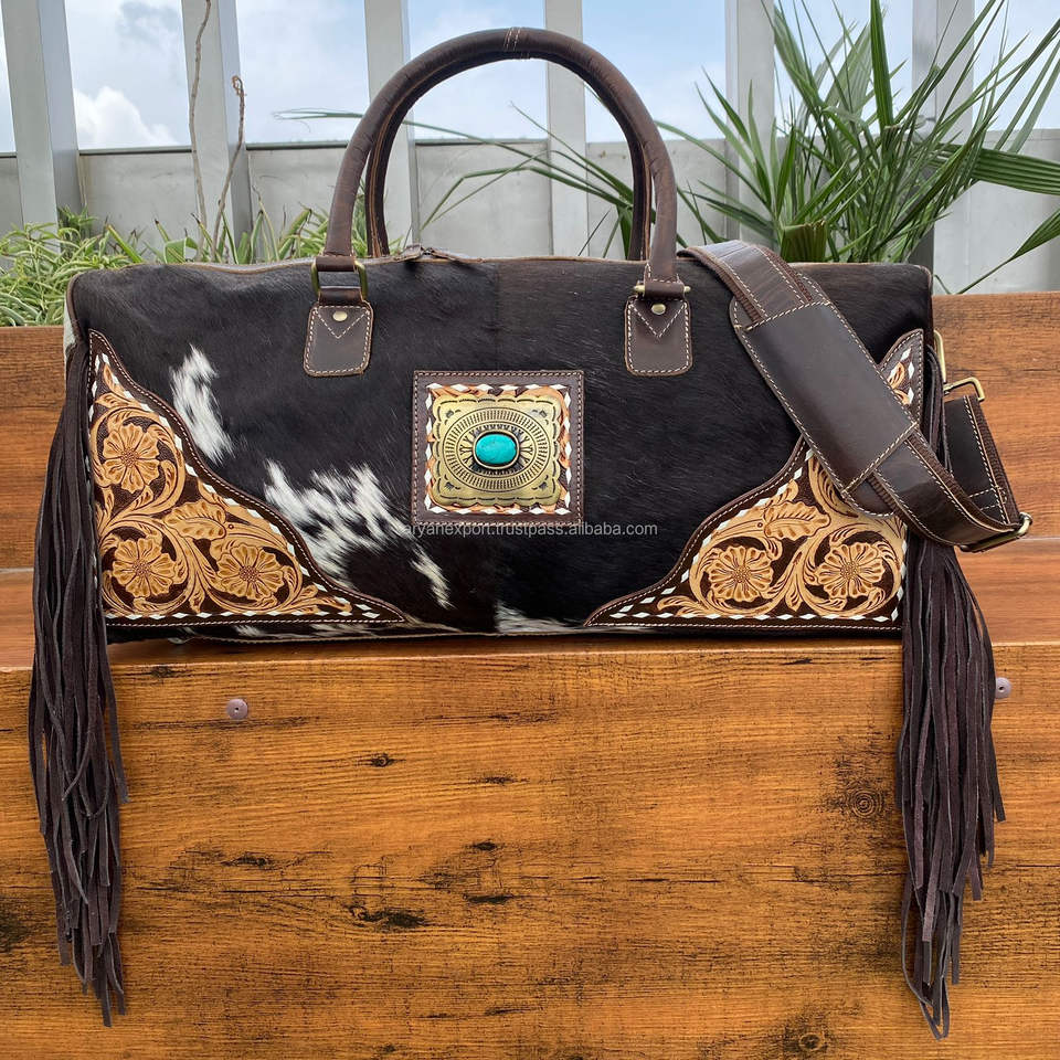 Product name:Hand Tooled Cowhide Duffel Bag & Toiletry Bag Combo sets