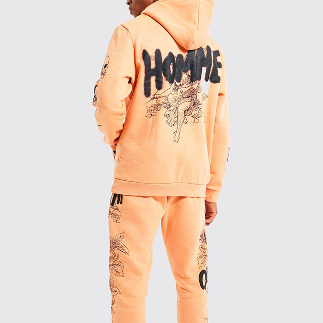 Custom Mens Clothing Puff Printing Tracksuit Set Two Piece Hoodie and French Terry Sweatpants Oversized Tracksuits Manufacturer