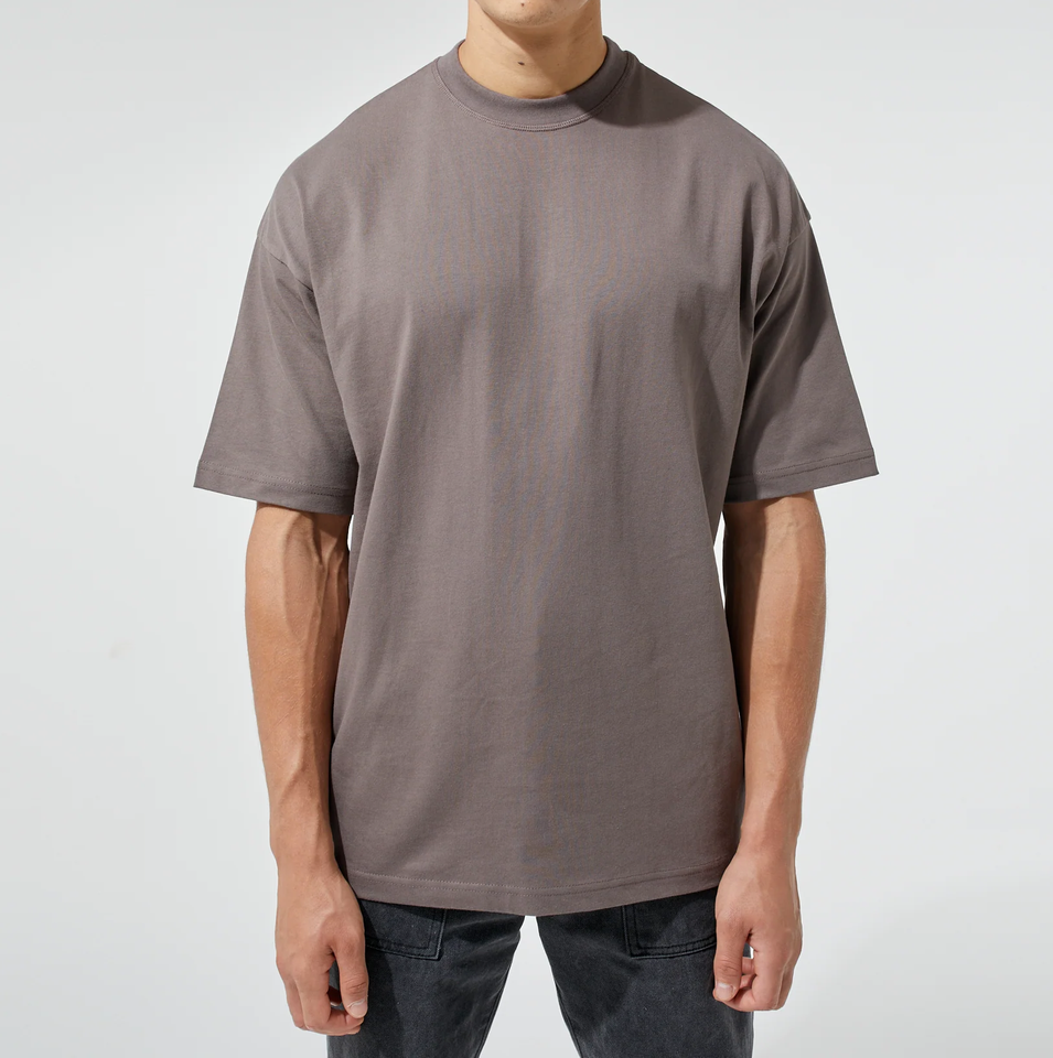 Custom Mens Heavyweight Brown T-Shirt 100% Cotton Boxy Fit Streetwear Drop Shoulder Oversized Blank Tee