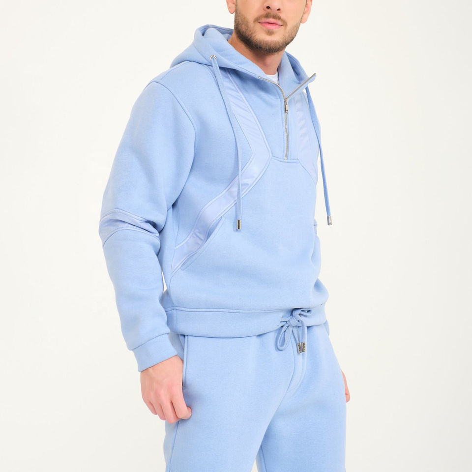 Custom Mens Quarter Zip Hoodie Training Jogger Sets Blank Cotton Hoodies and Sweat Pants Set