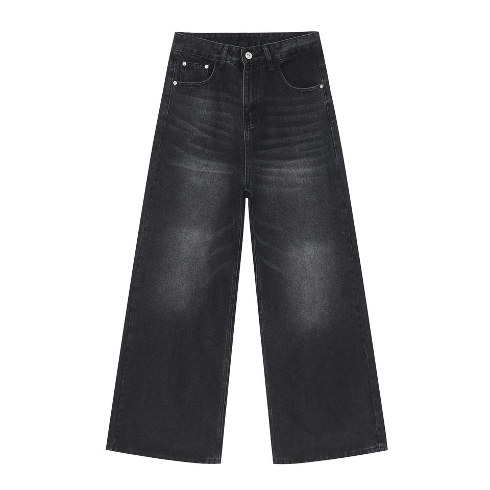 Custom Mens Retro Gray Black Blank Denim Stacked Jeans Pants Leg Baggy Jeans Loose Wide Legmen's pants, straight, curved striped