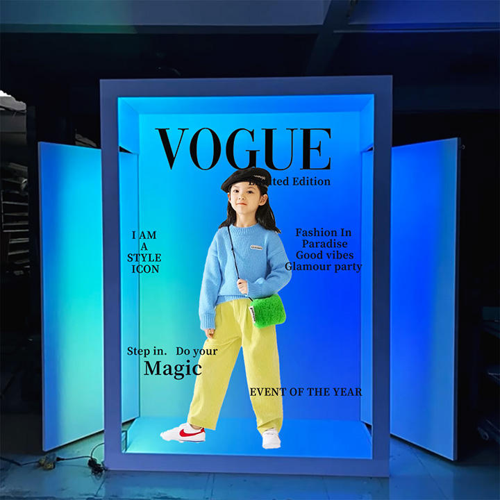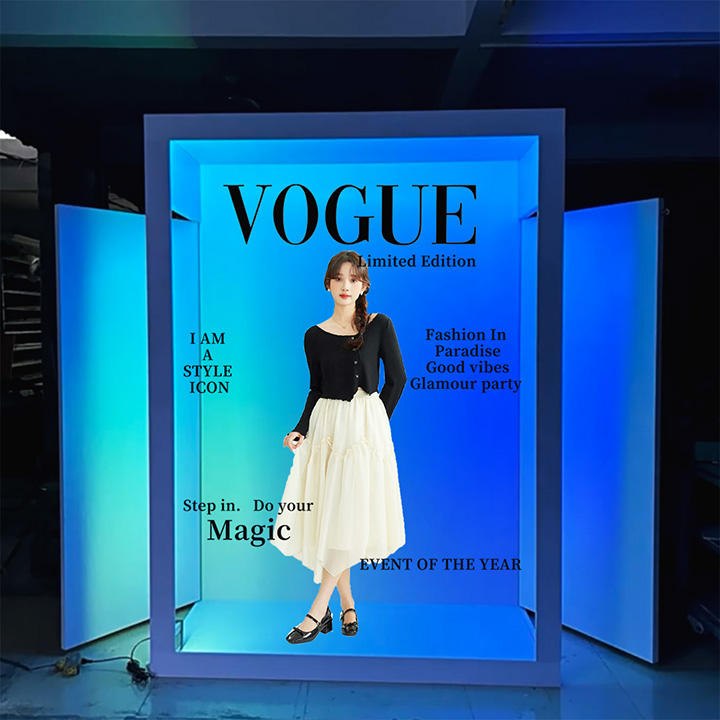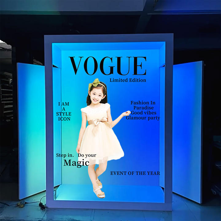 Custom Metal Magazine Cover PVC vogue Selfie Booth with 24pcs LED Lights for Camera & Smartphones Wedding Party Event Decor