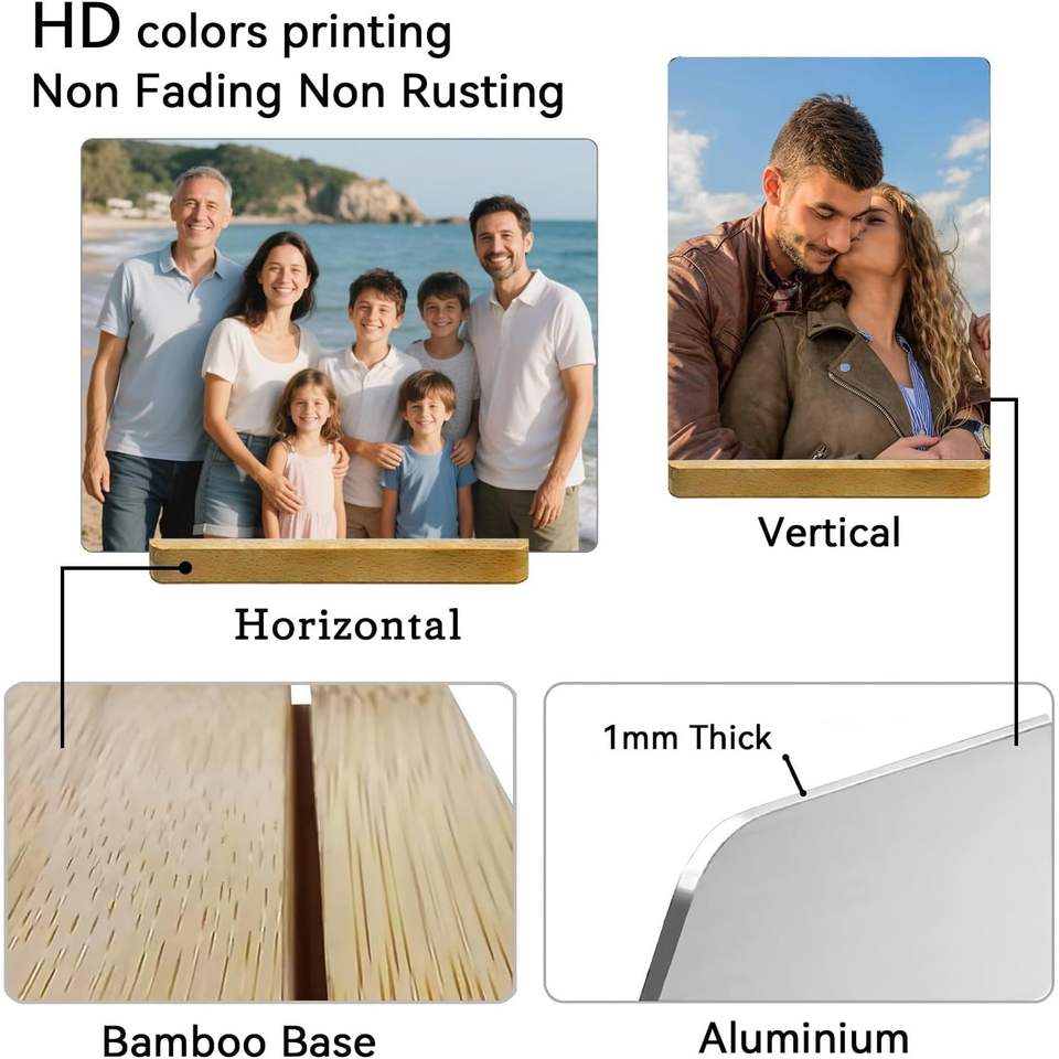 Custom Metal Photo Prints with Wooden Base Personalized Picture Frame Gift for Lovers Family Boyfriend Friends Plaques Category