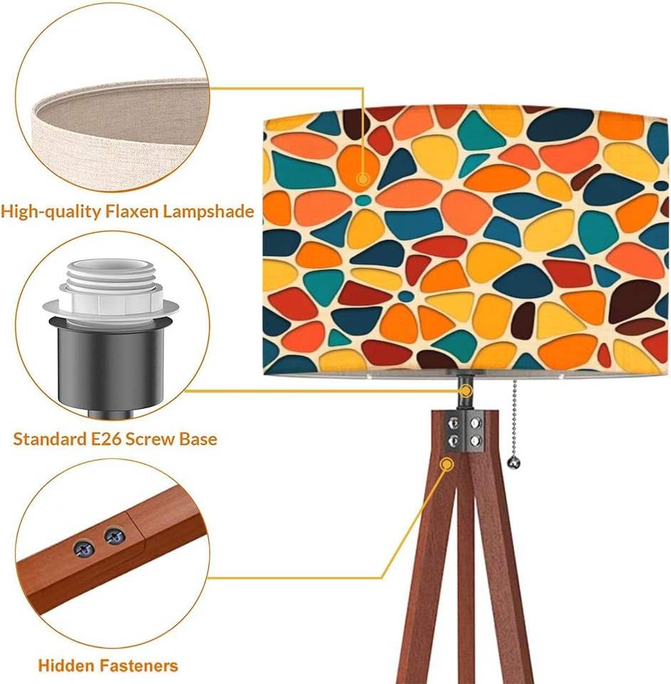 Custom Mid Century Lamp Abstract Vitrage Linen Lampshade E26 Base Dimmable LED Remote Tripod Floor Stand Print Demand MOQ 1"
