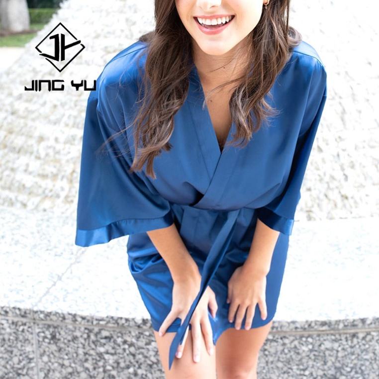 Custom Mid-sleeve Women's Nightgown Summer Short Cardigan Tie Bathrobe Silk Thin Sexy Nightgown