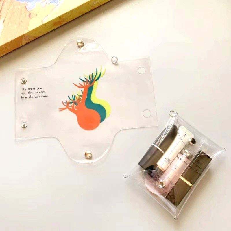 Custom Mini Transparent PVC Holographic Cosmetic Pouches Rectangle Button Travel-Friendly Makeup Lipstick Doll Storage Bags