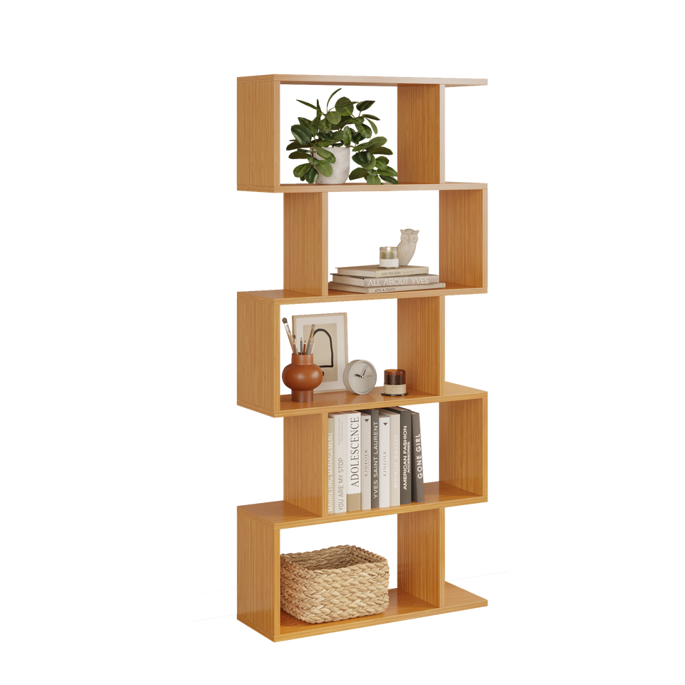 Custom Modern 5-Tier Freestanding Wooden Backless Bookcase with Step Shelves for Living Room Storage and Display