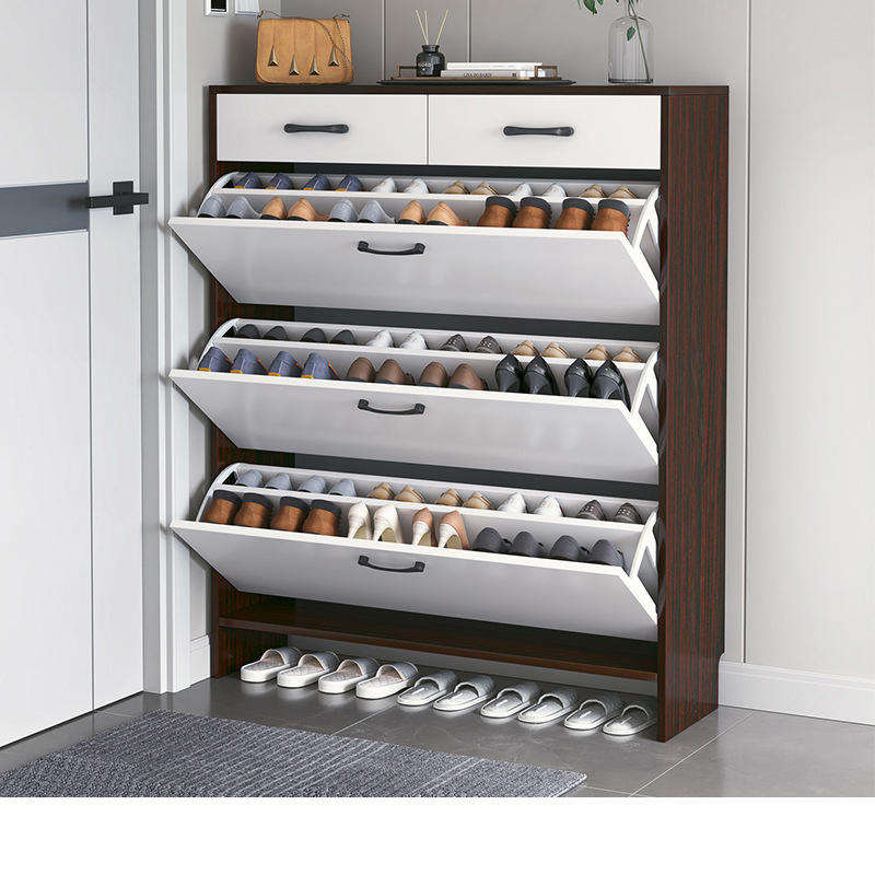 Custom Modern Apartment Living Room Shoe Cabinet Storage 4-Shelf Foldable Flip Cover Dustproof Artificial Board 24-35 Pair Home
