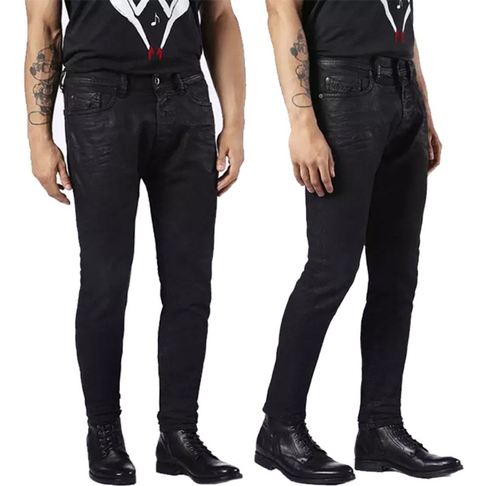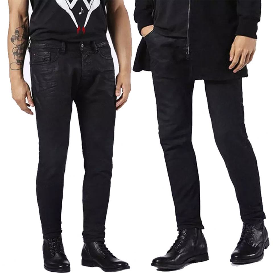 Custom Modern Black Tapered Fit Skinny Waxed Coated Denim Jeans Slim Leg Jean Pants for Men