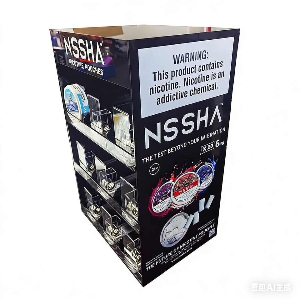 Custom Modern Eco-Friendly Recyclable Lightweight Water Resistant Smoke Tobacco Shop Plastic Step Shelf Snus Snuff Display