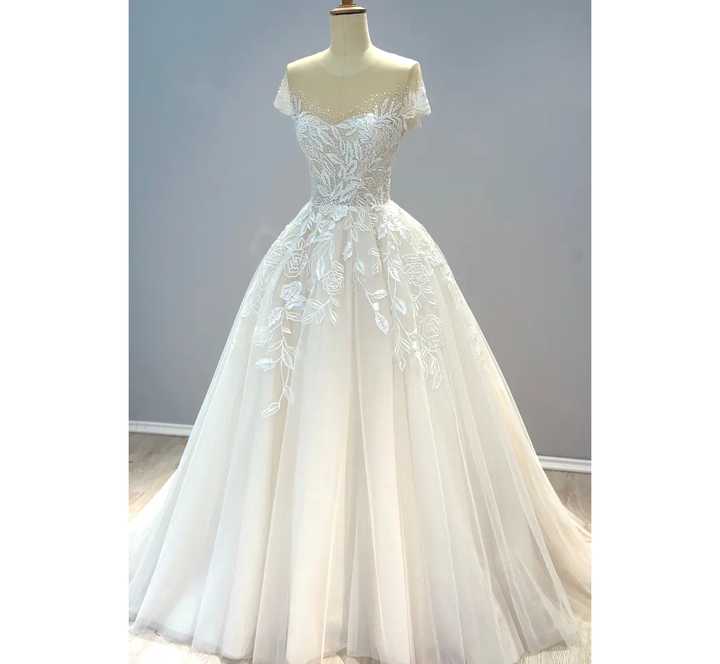 Custom Modern Floral A-Line Wedding Dress Handmade TNBPno25 Plus Size with Flower Lace and Beading Floor-Length for Summer