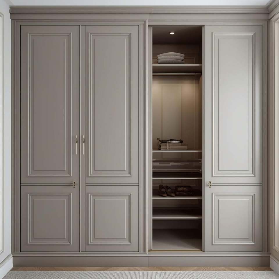 Custom Modern French Design Solid Wood Modular Wardrobe for Home Bedroom Cloakroom Ceiling Trendy Storage Cabinet