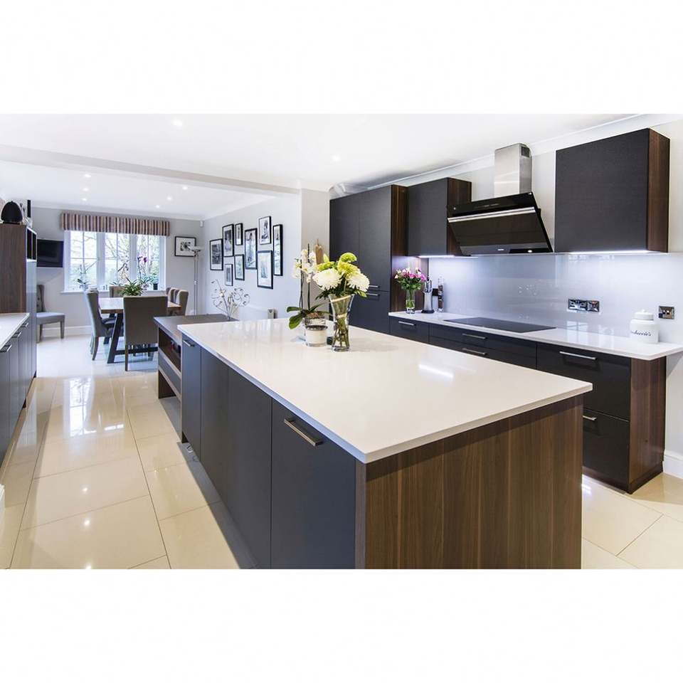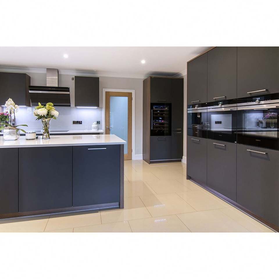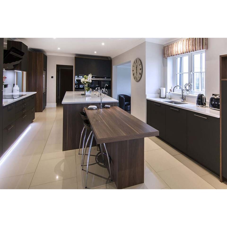 Custom Modern High-end Luxury Walnut Cabinet Black Solid Wood Door Kitchen Cabinet With Light Strip